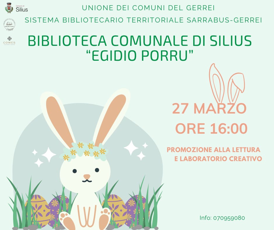 La biblioteca di Silius vi invita mercoledì 27 marzo ore 16:00 alle attività di promozione alla lettura e laboratorio creativo organizzate in occasione delle festività Pasquali.