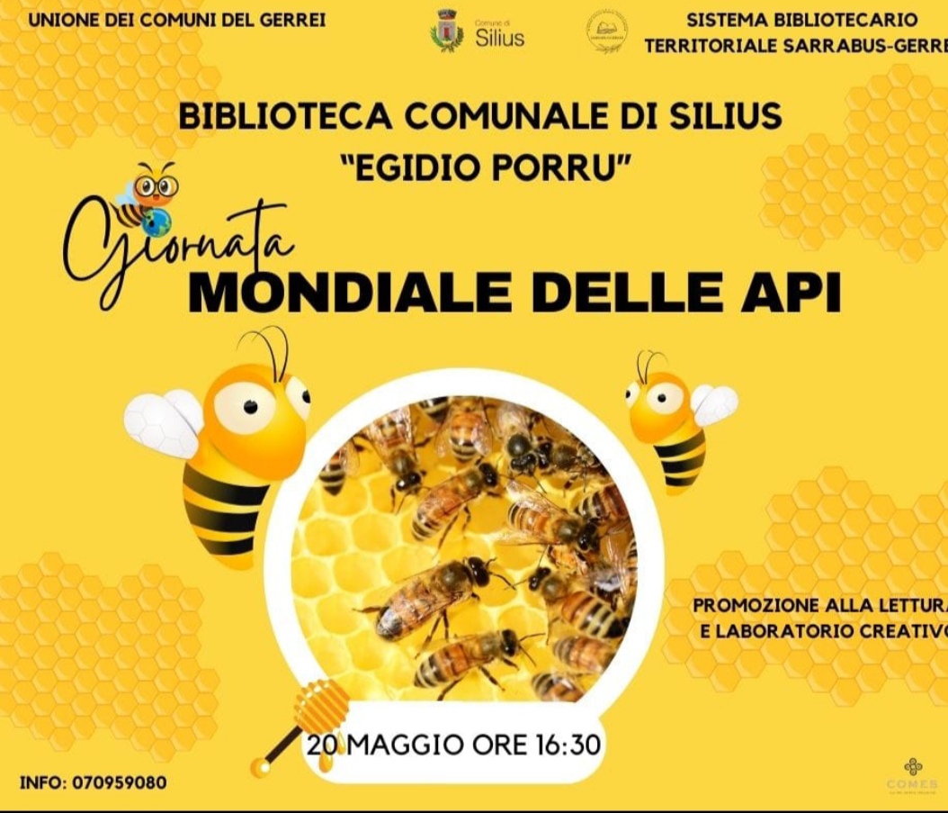 La Biblioteca Comunale "Egidio Porru" invita tutti gli interessati a partecipare all'attività di Promozione alla lettura e laboratorio creativo sulla "GIORNATA MONDIALE DELLE API"