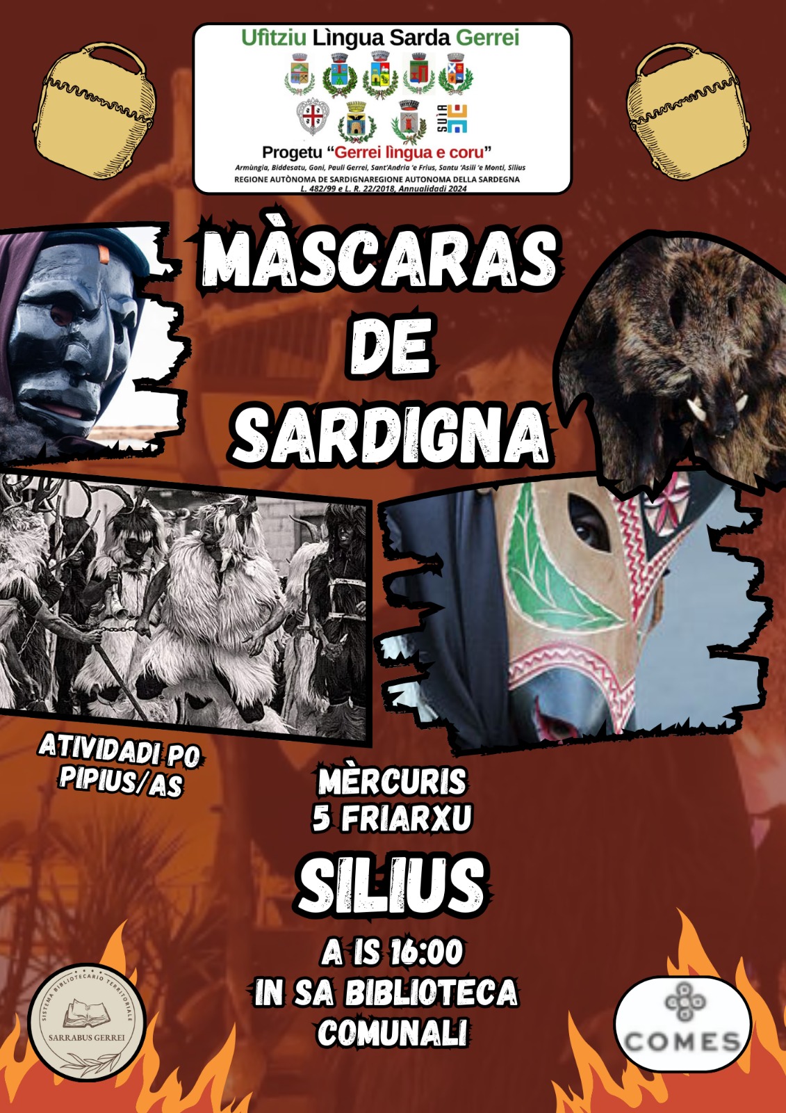 L’UFFICIO LINGUA SARDA GERREI INVITA TUTTI GLI INTERESSATI A PARTECIPARE AL LABORATORIO CREATIVO “MASCARAS DE SARDIGNA”, CHE SI TERRA’ PRESSO LA BIBLIOTECA COMUNALE “EGIDIO PORRU” MERCOLEDI’ 5 FEBBRAIO ALLE ORE 16:00