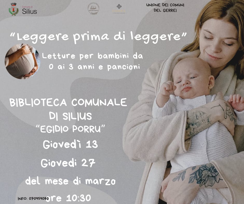 LA BIBLIOTECA COMUNALE "EGIDIO PORRU" INVITA TUTTI GLI INTERESSATI A PARTECIPARE ALLE ATTIVITA' DI PROMOZIONE ALLA LETTURA "LEGGERE PRIMA DI LEGGERE", RIVOLTE AI BAMBINI DAI 0 AI 3 ANNI E PANCIONI.
