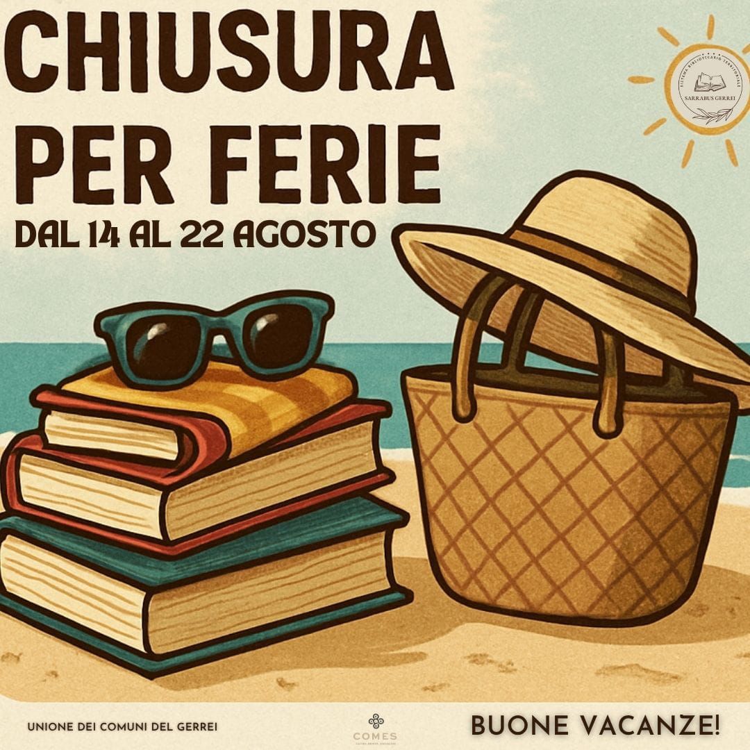 IN ALLEGATO LA LOCANDINA RELATIVA ALLA CHIUSURA DELLA BIBLIOTECA COMUNALE "EGIDIO PORRU" PER FERIE ESTIVE.