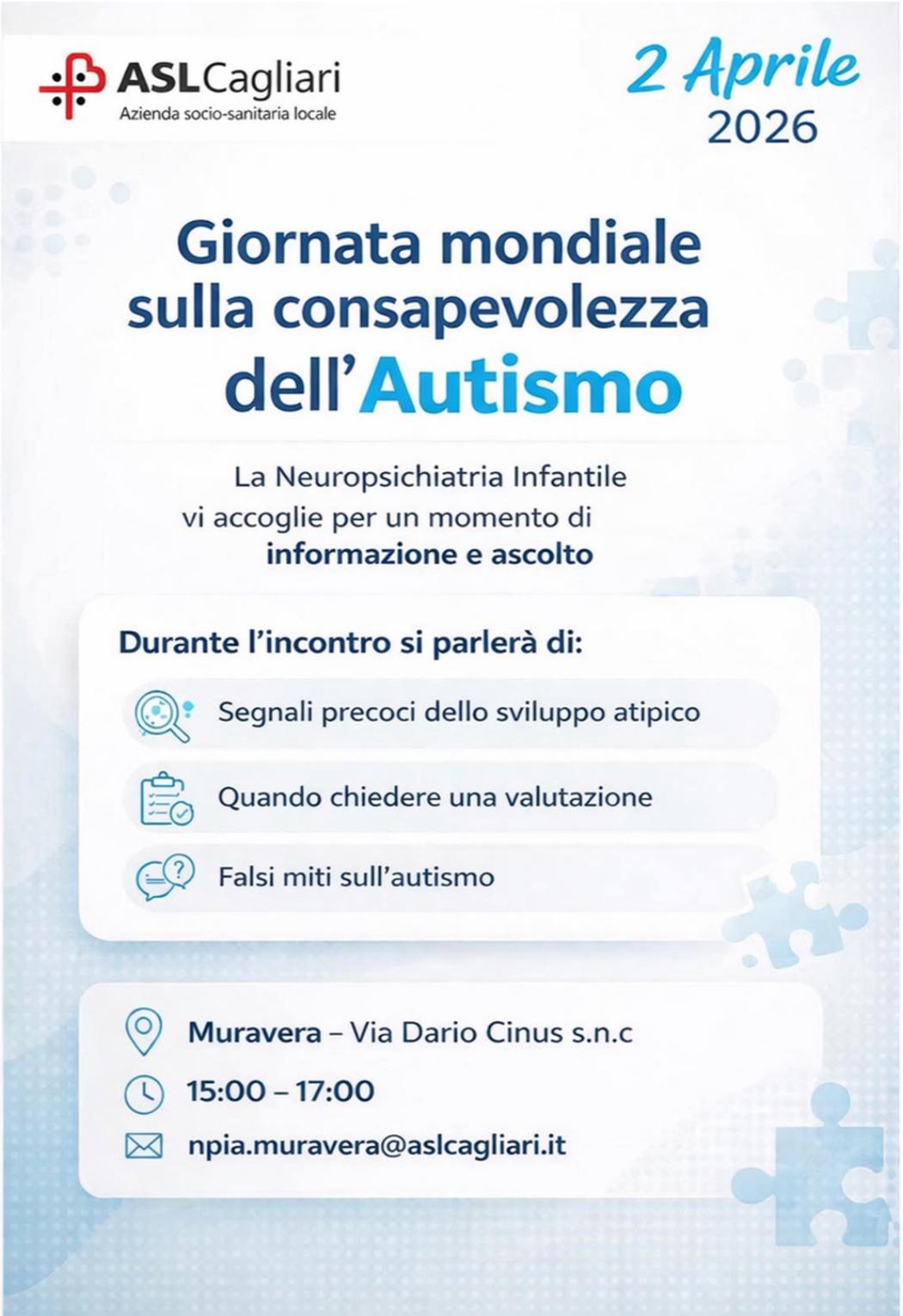IL SERVIZIO DI NEUROPSICHIATRIA INFANTILE OFFRE A TUTTE LE PERSONE INTERESSATE UN MOMENTO DI INFORMAZIONE E CONFRONTO SUL TEMA DELL'AUTISMO: